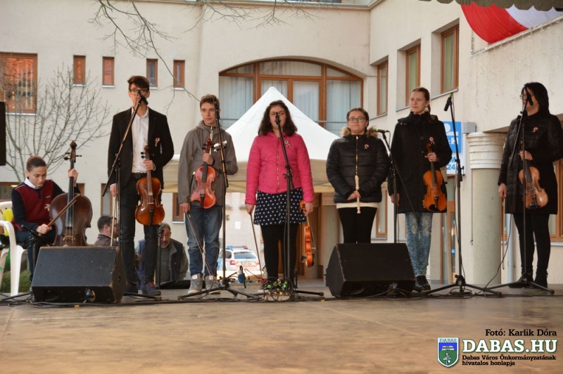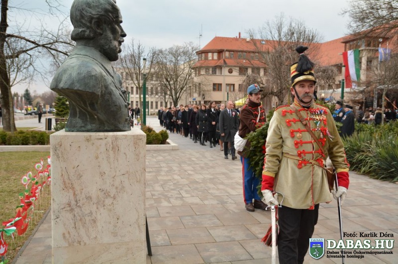 Dabas Város Önkormányzata az 1848-49-es forradalom és szabadságharc 170. évfordulója alkalmából a város több pontján tartott ünnepi megemlékezést. A rendezvény 14 órakor kezdődött a Kossuth Ház Galéria és Kerekes László Alkotóháznál a óvodások rajzkiállításának megnyitójával és díjkiosztásával, illetve koszorúzással a Kossuth László emléktáblájánál.