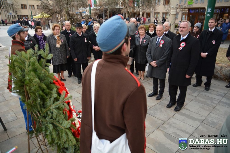 A Rendezvényen Kőszegi Zoltán polgármester köszöntötte az ünneplőket, majd Pánczél Károly országgyűlési képviselő mondott ünnepi beszédet. Az ünnepségen idén is átadásra került a Dabas Város Díszpolgára kitüntető cím, melyet ez alkalommal a Képviselő-testület Dr. Eke Sándornak adományozta, aki immáron sok évtizede aktív résztvevője a város közéletének.