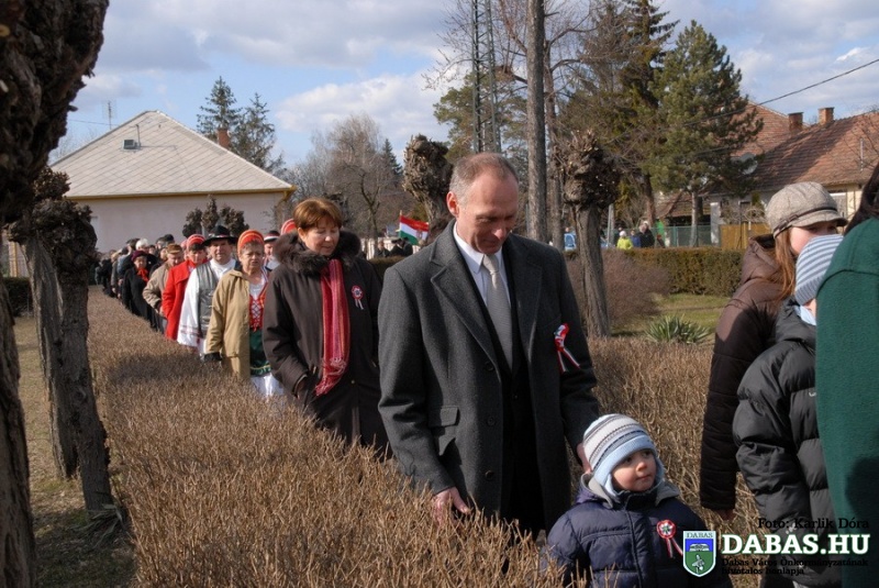 Az idei március 15-i ünnepség képekben: Ünnepi beszédek, díjátadások és koszorúzás a Kossuth Háznál. Ünnepi menet a református templom érintésével a Szent István térre. Koszorúzás a Kossuth szobornál. Díjátadások és ünnepi műsor a Dabasi-Diego Sportcsarnokban. A rendezvényen két rangos önkormányzati díj került átadásra, a Dabas Város Díszpolgára kitüntető cím és a Dabas Város Környezetvédelméért Télessy István-díj. Fáklyás felvonulás. Pásztor Gergely ünnepi beszéde a Kossuth-sírnál. Táncház a Városháza nagytermében.