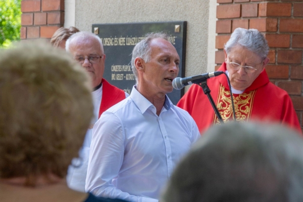 Kőszegi Zoltán polgármester a gyóni közösségért végzett szolgálatát, az egyházközség épüléséért végzett fáradhatatlan munkásságáról beszélt, kiemelve, hogy a gyóniak emlékezetében ma is elevenen él Bisztrai atya, aki szent életével kiérdemelte, hogy a helyi közösség szentként tisztelje.