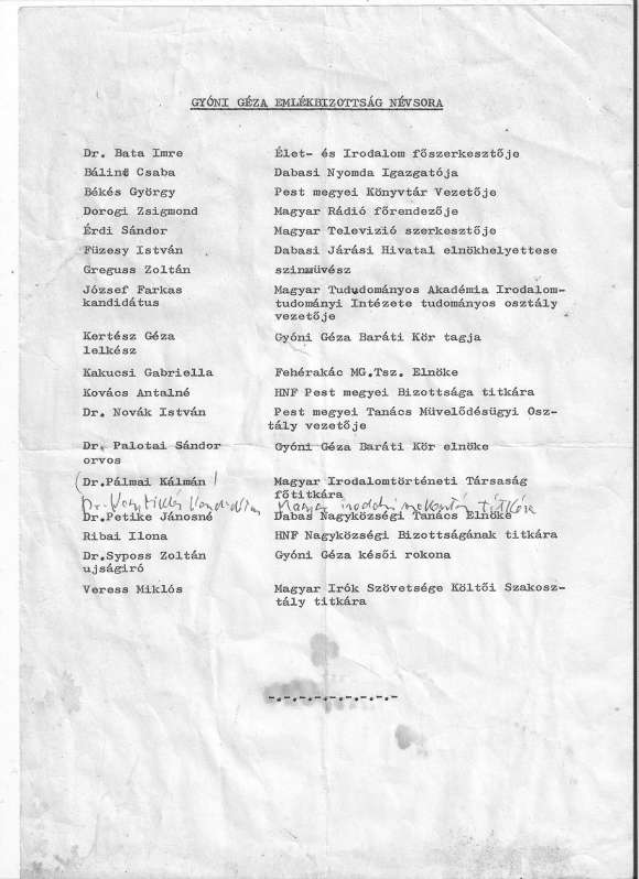 = Gyóni Géza emlékünnepség. Pest Megyei Hírlap 1979. június 23; p. 4.
