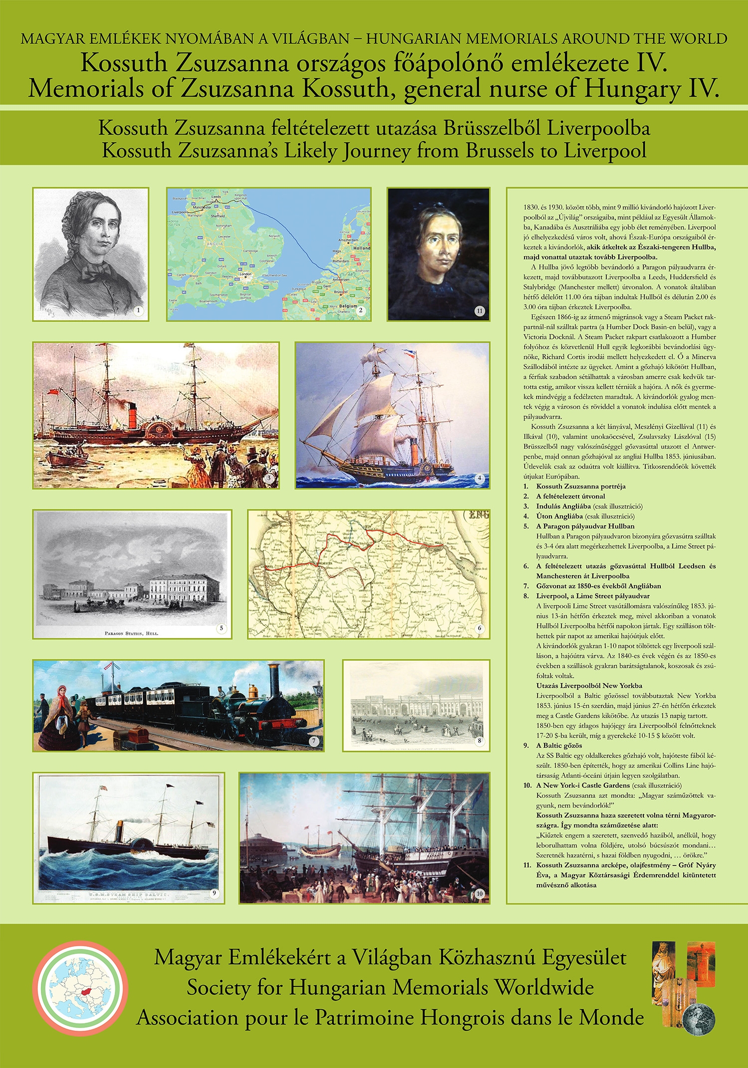 A filmben térképen ábrázolt feltételezett utazás hosszas keresgélés, angol és magyar nyelvű irodalom elolvasása után körvonalazódott és egyre inkább bebizonyosodott, hogy más útvonalon nem mehettek. A tengeri úton való utazás kizárt, hiszen nagyon hosszú utat kellett volna megtennie a korabeli gőzhajóknak, akár dél felé, Wales megkerülésével, akár észak felé, Skóciát körbe hajózva értek volna el Liverpoolig. Azt már Dr. Csorba László és Deák Nóra bebizonyították, hogy Liverpoolban szálltak fel a Baltic nevű gőzhajóra, de hogy jutottak el odáig? S ekkor bukkant rá Szóládi Erika tanárnő egy olyan angol nyelvű cikkre, amely leírja, hogy a korabeli migrációs útvonal Brüsszelből az angliai Hull-ig gőzhajóval vezetett, majd onnan a már rendkívül szerteágazó vasúthálózaton, gőzvasúttal a Leeds - Manchester - Liverpool útvonalon folytatódott. Nagy valószínűséggel kizárt, hogy másfelé utazhattak! A Londonon keresztüli utazást Deák Nóra kutató zárta ki, mert akkor találkozhatott volna az akkor már Londonban száműzetésben élő Kossuth Lajos Kossuth Zsuzsannával, de erről nincs semmilyen leírás. Ugyan korabeli hajó- és vonatjegyekkel, valamint feljegyzésekkel nem lehet bizonyítani az utazás tényét, de ha logikusan végig gondoljuk, más útvonal kizárt. Ezért merte a tanárnő már a filmbe beletenni a térképet a berajzolt útvonallal.
