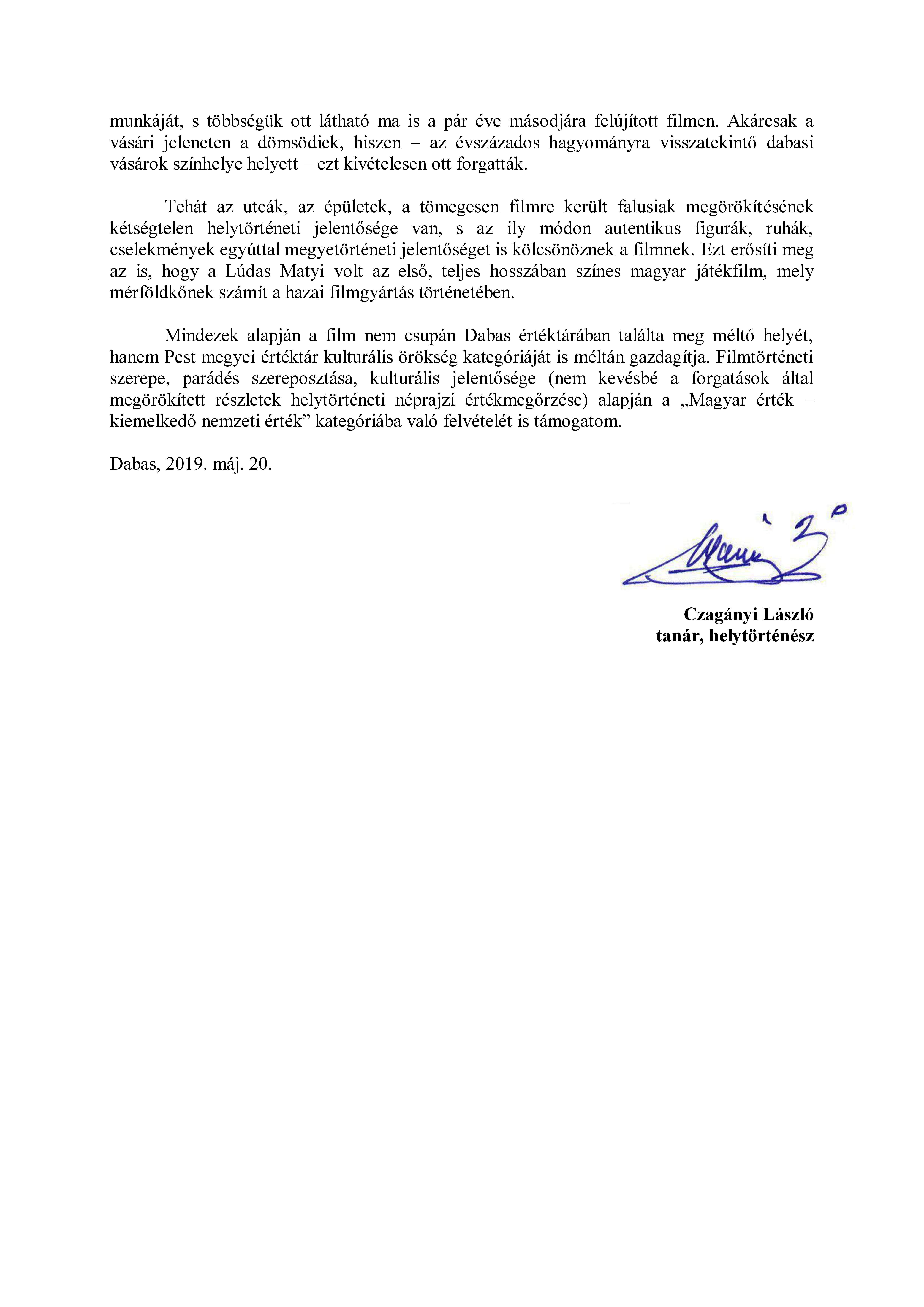 A Ludas Matyi forgatása ma is szép emléke, számon tartott jeles eseménye („egy szelet múltunkból”) Dömsödnek.