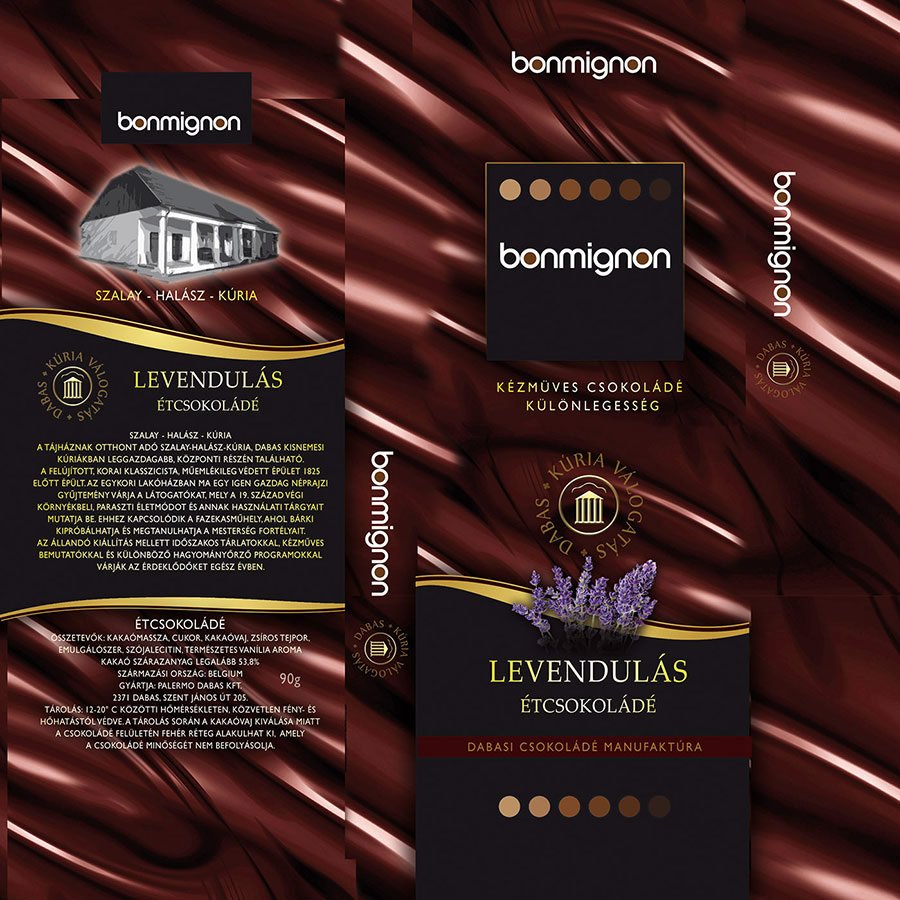 Levendulás étcsokoládé: Csomagolásán a Szalay-Halász-kúria épületét és leírását jeleníti meg: „A Tájháznak otthont adó Szalay-Halász-kúria Dabas kisnemesi kúriákban leggazdagabb, központi részén található. A felújított, korai klasszicista, műemlékileg védett épület 1825 előtt épült. Az egykori lakóházban ma egy igen gazdag néprajzi gyűjtemény várja a látogatókat, mely a 19. századvégi környékbeli paraszti életmódot és annak használati tárgyait mutatja be. Ehhez kapcsolódik a fazekasműhely, ahol bárki kipróbálhatja és megtanulhatja a mesterség fortélyait. Az állandó kiállítás mellett időszakos tárlatokkal, kézműves bemutatókkal és különböző hagyományőrző programokkal várják az érdeklődőket egész évben.”