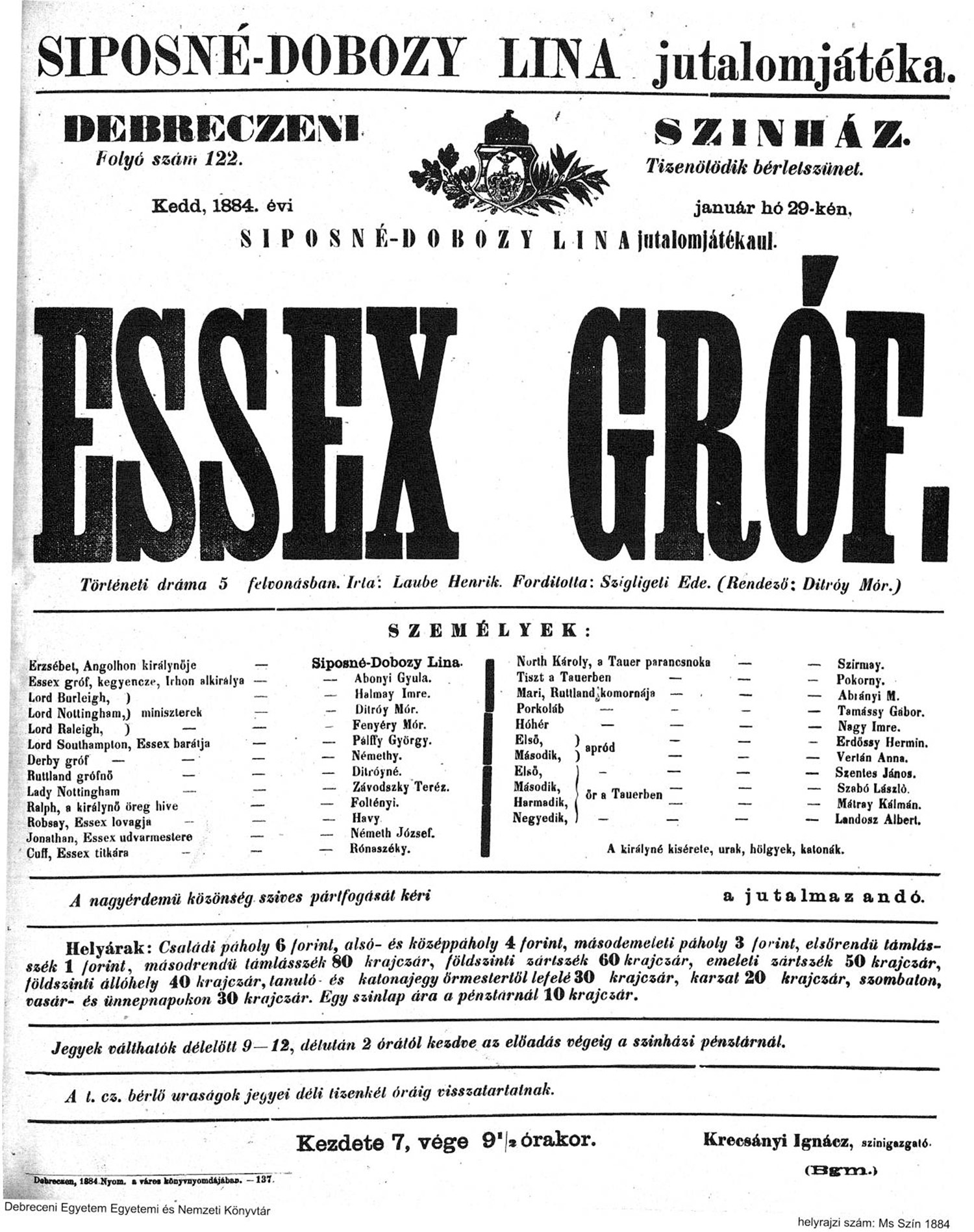 - Színház – Krecsányi derék színtársulata… 1876. október 5. p. 318.