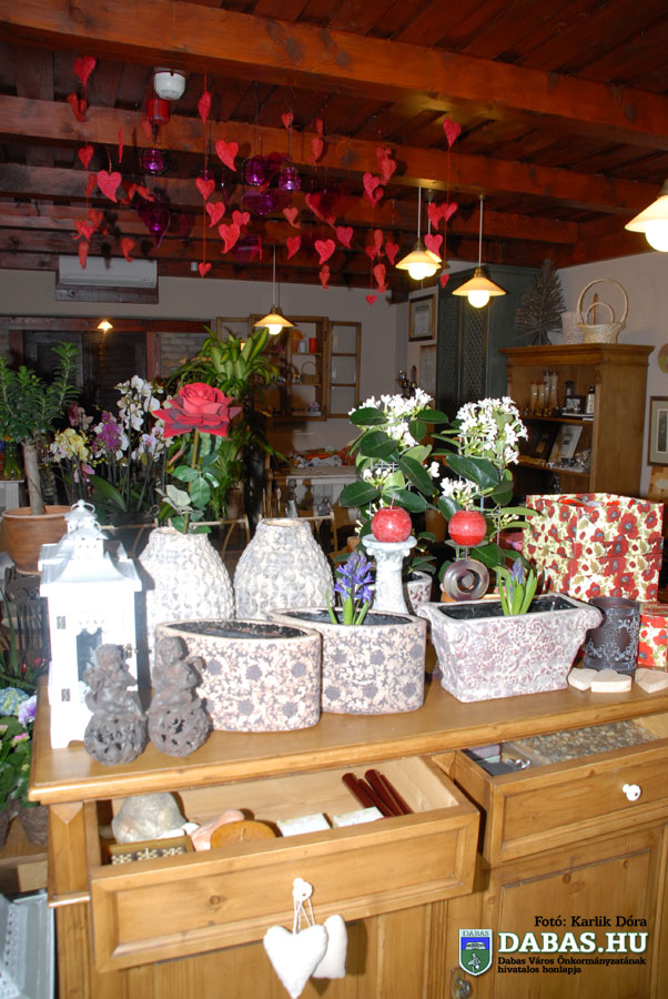 G.M.: A karácsonyi szezon után következik a Valentin-nap, hat hétig azonban egyforma kirakatot nézni nem túl csábító a vásárlók számára. Ezt úgy igyekeztünk megoldani, hogy kis hópihéket, jégcsapokat fűztünk fel, illetve a farsang miatt tollakkal próbáltuk megtörni a havas kirakatot. A másik oldalt melegebbre készítettük, barna-bordó tollboákat lógattunk be, amihez két hete a szívek is társultak. Két héttel Valentin-nap előtt a fehér kirakatot is szívekkel gazdagítjuk, illetve az üzlet közepére készítettünk egy mécsesekkel dúsított szívzuhatagot. Az első kirakatokban változik ilyenkor az áru is. Valentin-nap után készülünk a tavaszra, a Nőnapra, húsvétra. Ezeknek az alapját élénkebb, harsányabb színű virágokkal alakítjuk ki és bővítjük majd húsvéti elemekkel.