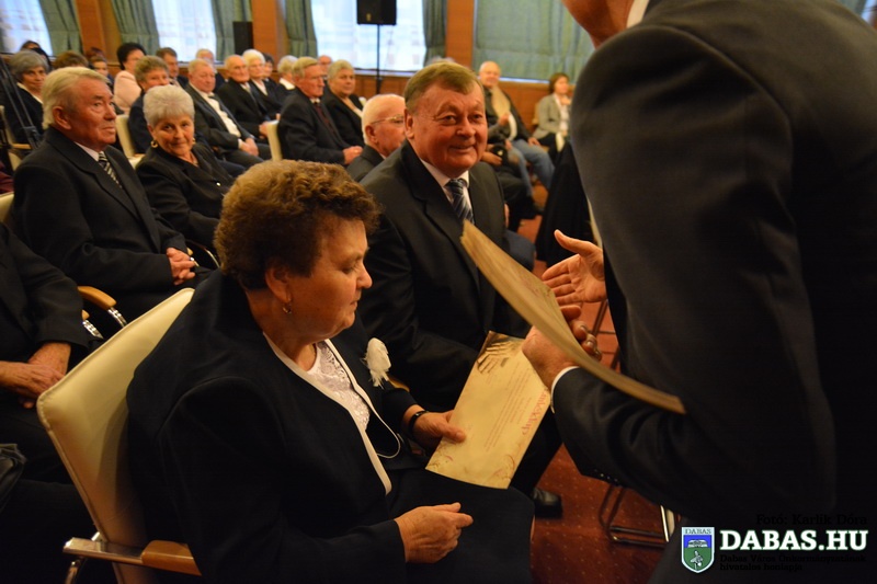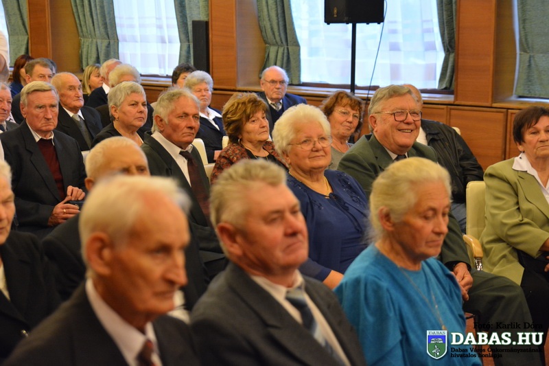 Dabas Város Önkormányzata november 22-én köszöntötte az 50-60 éves házassági évfordulósokat, sőt idén először az 55-56-70 éves jubiláló párok is csatlakoztak az ünnepeltekhez. Az idősek aláírásukkal erősítették meg házassági esküjüket a város anyakönyvvezetője előtt, majd Kőszegi Zoltán polgármester köszöntötte őket és átadta az önkormányzat ajándékait.