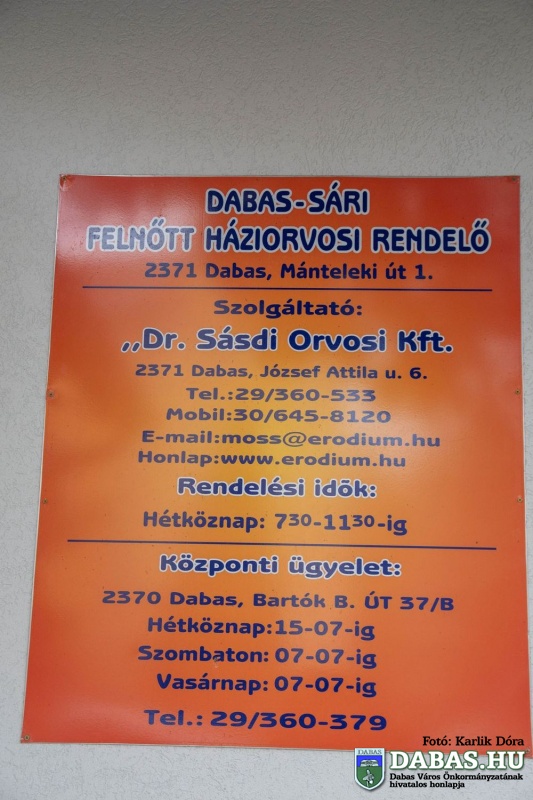 Február 1-jén ünnepélyes keretek között adták át a megújult Sári háziorvosi rendelőket, amelyet a Pest megyei kompenzációs alapból nyújtott pályázati támogatással és jelentős önkormányzati forrás felhasználásával valósított meg Dabas Város Önkormányzata. Az eseményen Szabó István a Pest Megyei közgyűlés elnöke köszöntötte az egybegyűlteket, kihangsúlyozva, hogy Pest megye a történelmi időkben is gondot fordított arra, hogy az egészséget , mint értéket óvja, és ma sincs ez másképpen. Pánczél Károly országgyűlési képviselő ünnepi beszédében arra hívta fel a figyelmet, hogy nem egyedi az egészségügyi alapellátás fejlesztése Dabason, hiszen egy új háziorvosi rendelő építése van folyamatban Dabasi-szőlőkben.