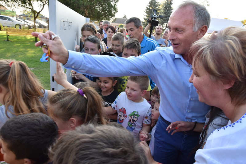 Október 13-án ragyogó napsütés csillogott vissza a gyermekek szeméből, akik lelkesen várták, hogy birtokba vehessék az új játszókertet. A zsibongás az egész gyóni parkot betöltötte, ahol mesemondók, kézműves foglalkozások, társas játékok várták a kicsiket. A szülők sem unatkoztak az anyuka- és apukamegőrzőkben és egy hagyományteremtő szándékkal megrendezett retroautó-találkozó is színesítette a programokat.