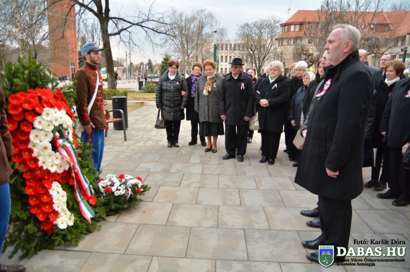 A rendezvény koszorúzással zárult, közel harminc intézmény, civilszervezet, egyesület kísérte a közös koszorút az épp 50 éve felavatott Kossuth-szobor talapzatához a Dabasi Kovács Sámuel Tüzércsapat felvezetésével.