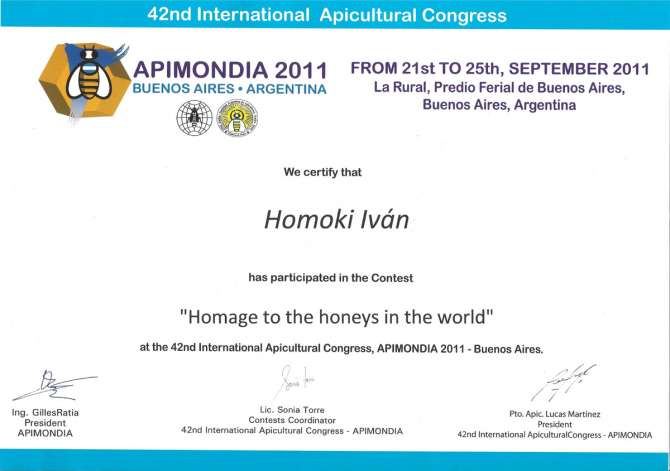 (Homoki Iván: „Hódolat a világ mézeinek”. Dabasi méz Argentínában. Dabasi Újság 2011. december; p. 23.)