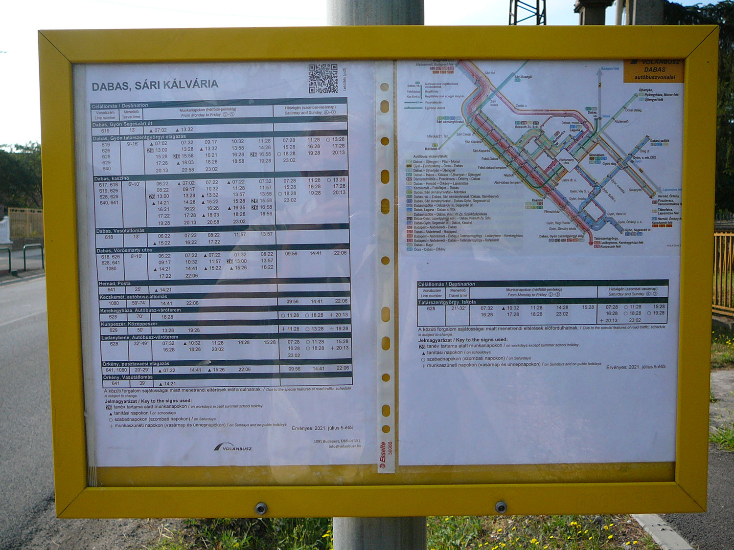 A Szent János és Köztársaság utak saroktelkén kialakított kegyhely jól ismert Dabason, sőt, miután buszmegálló is van ezen a helyen, így a neve az átutazók körében is ismerősen cseng. A ma látható, műkőkeresztekből álló Kálvária 1982-ben létesült, kényszerűen, ugyanis az előzőleg, bő száz évvel korábban állított fakeresztek elkorhadtak. Keletkezésének körülményeit a Sári plébánia Historia Domusa pontosan rögzíti. Begyáts Lénárd (1832-1910) plébános 1879-ben a „Cálvária alapítása” címszó alatt a következőket írta:
