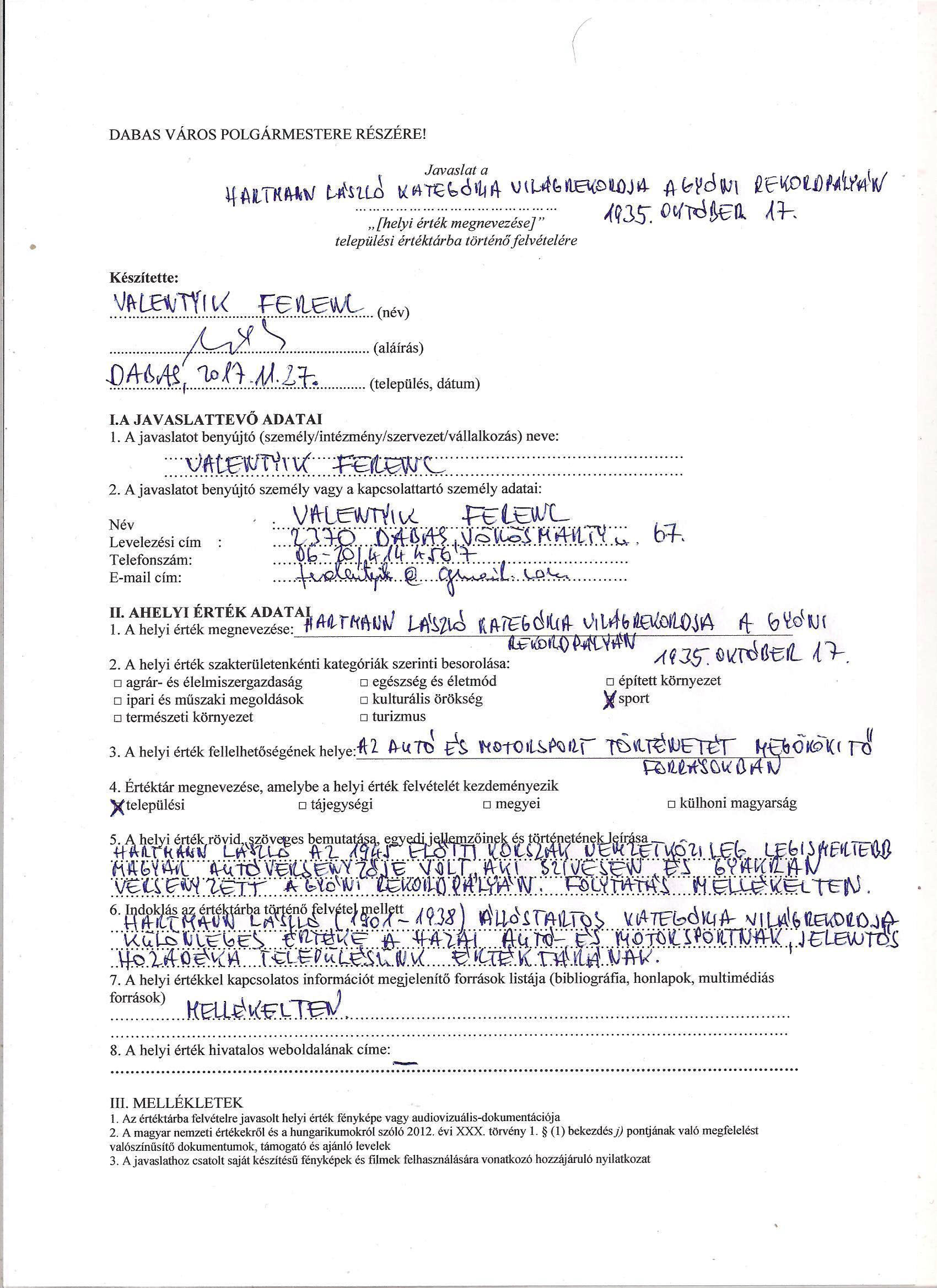 Összeállította: Valentyik Ferenc