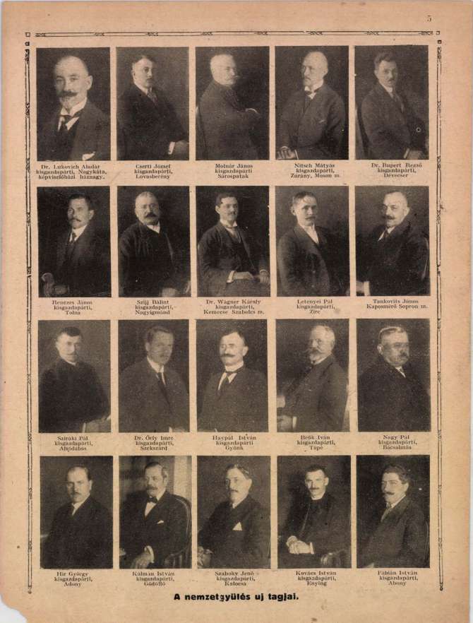 Tolnai Világlapja = A nemzetgyűlés új tagjai (fényképfelvételek). 1920. március 13; p. 5.