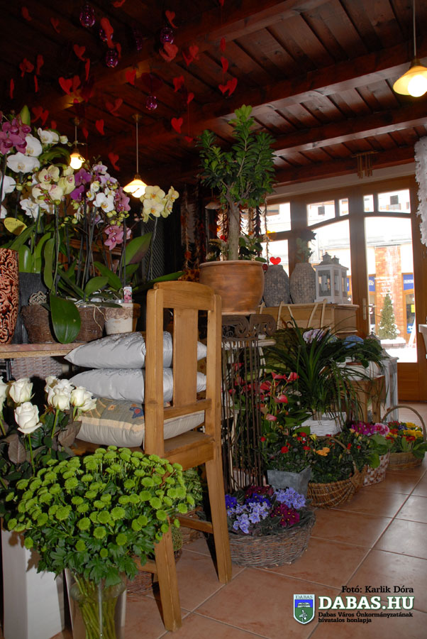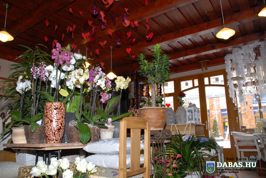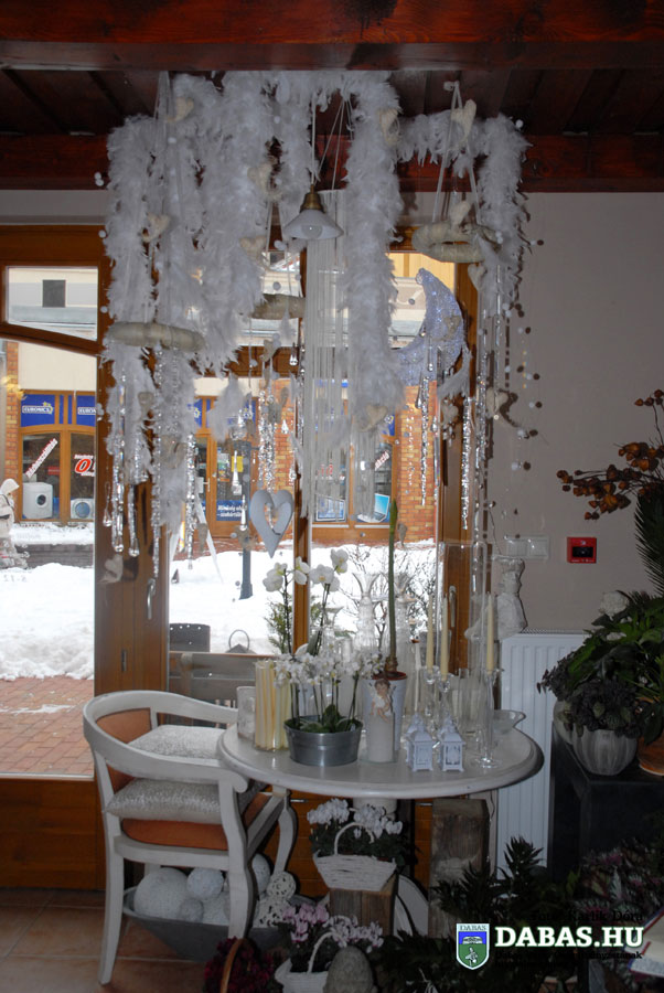 G.M.: A karácsonyi szezon után következik a Valentin-nap, hat hétig azonban egyforma kirakatot nézni nem túl csábító a vásárlók számára. Ezt úgy igyekeztünk megoldani, hogy kis hópihéket, jégcsapokat fűztünk fel, illetve a farsang miatt tollakkal próbáltuk megtörni a havas kirakatot. A másik oldalt melegebbre készítettük, barna-bordó tollboákat lógattunk be, amihez két hete a szívek is társultak. Két héttel Valentin-nap előtt a fehér kirakatot is szívekkel gazdagítjuk, illetve az üzlet közepére készítettünk egy mécsesekkel dúsított szívzuhatagot. Az első kirakatokban változik ilyenkor az áru is. Valentin-nap után készülünk a tavaszra, a Nőnapra, húsvétra. Ezeknek az alapját élénkebb, harsányabb színű virágokkal alakítjuk ki és bővítjük majd húsvéti elemekkel.